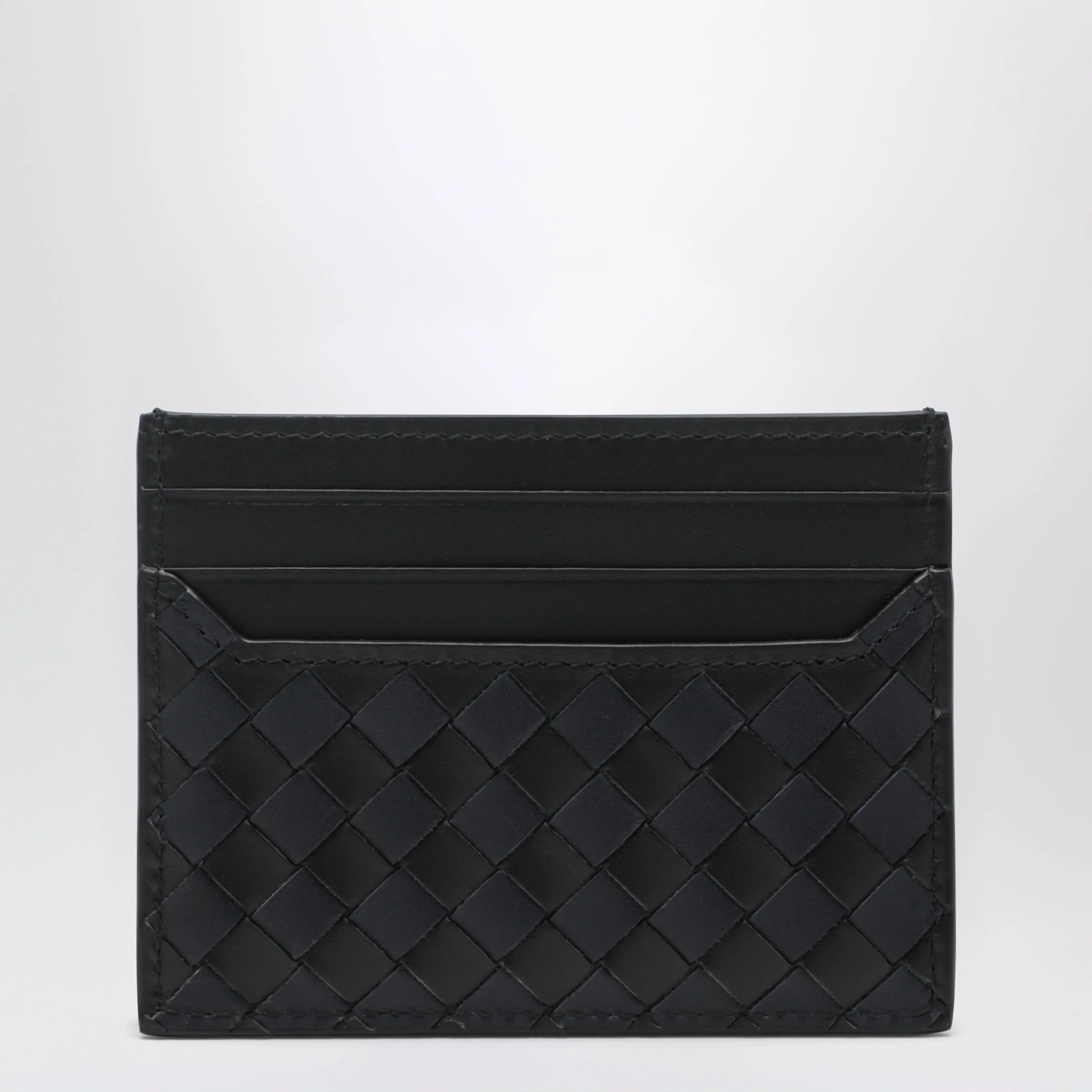 Leather card holder with all-over Intrecciato motif by Bottega Veneta• Color: Neroblu• Four card slots• One central pocket• Two-tone effect