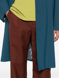 checked trousers Highlights - Dark red/burnt orange/navy blue - Virgin wool - Interlock twill weave - Check pattern - Concealed front button, hook and zip fastening - Belt loops - Pleat detailing - Two diagonal pockets to the sides - Dart detailing - Two rear jetted pockets - Unlined - Straight leg Imported Composition Virgin Wool 100% SIZE & FIT Model measurements Height 6 ft 2 in(1.87 m) Bust/Chest 37.79 in(96 cm) Hips 37.79 in(96 cm) Waist 30.31 in(77 cm) FittingInformation Designed for a straight-leg, allowing for an unrestricted and comfortable fit over the leg Made from a midweight non-stretch fabric