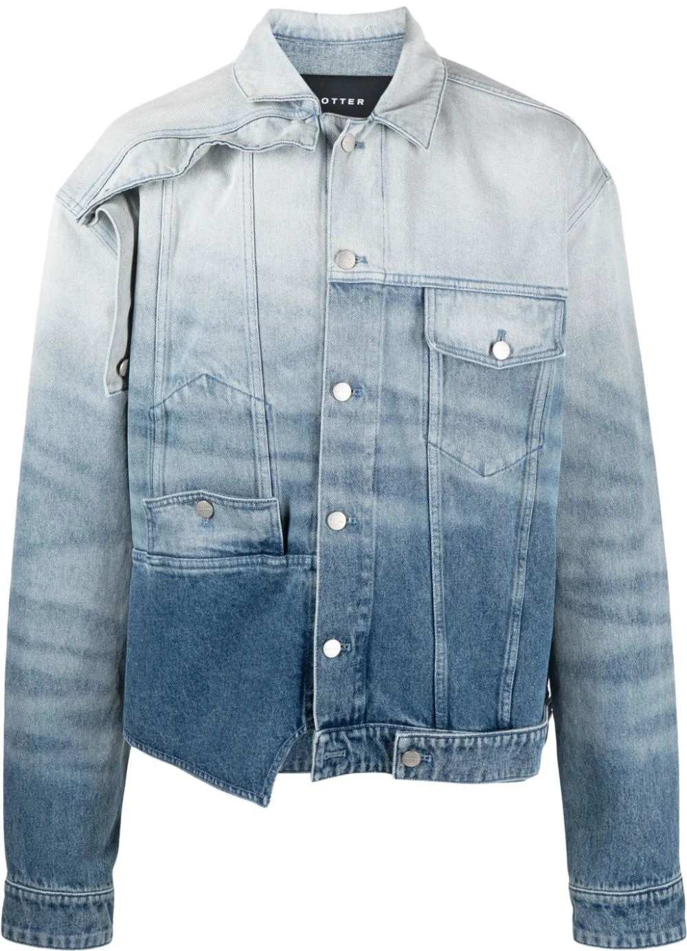 whiskering-effect denim jacket Highlights - Light blue - Organic cotton - Denim - Mid wash - Whiskering effect - Logo patch to the rear - Classic collar - Front button fastening - Long sleeves - Buttoned cuffs - Two front flap pockets - Asymmetric hem Imported Composition Organic Cotton 100% SIZE & FIT Model measurements Height 6 ft 1 in(1.86 m) Bust/Chest 34.64 in(88 cm) Hips 35.43 in(90 cm) Waist 27.55 in(70 cm) FittingInformation Designed to be unstructured, offering a loose fit throughout Sturdy and hard-wearing, this denim piece offers no stretch This piece fits true to size – take your usual size Washing instructions Machine Wash