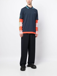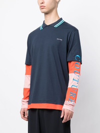 layered-effect logo-embroidered T-shirt Highlights - Navy blue/multicolour - Organic cotton - Layered effect - Embroidered logo at the chest - Polo collar - Short-sleeve overlay - Embroidered slogan - Straight hem Imported Composition Body: Organic Cotton 100% SIZE & FIT Model measurements Height 6 ft 2 in(1.89 m) Bust/Chest 37.4 in(95 cm) Hips 36.61 in(93 cm) Waist 28.34 in(72 cm) FittingInformation Designed to be unstructured, offering a loose fit throughout Made from a midweight non-stretch fabric, this piece offers minimal elasticity when worn This piece fits true to size – take your usual size