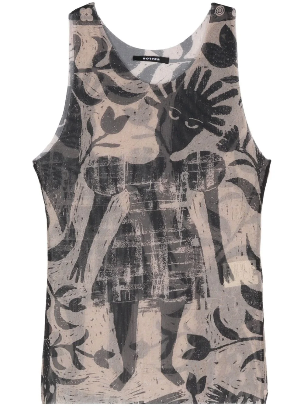 mix-print mesh vest Highlights - Beige/black - Mesh design - Stretch-design - Sheer - Raw-cut finish - Mix print - Scoop neck - Sleeveless - Straight hem Imported Composition Polyamide 100% SIZE & FIT Model measurements Height 6 ft 2 in(1.87 m) Bust/Chest 36.41 in(92.5 cm) Hips 37 in(94 cm) Waist 29.52 in(75 cm) FittingInformation Designed for a close fit throughout Made from a lightweight stretch fabric, this piece offers elasticity and flexibility when worn This piece fits true to size – take your usual size Washing instructions Hand Wash