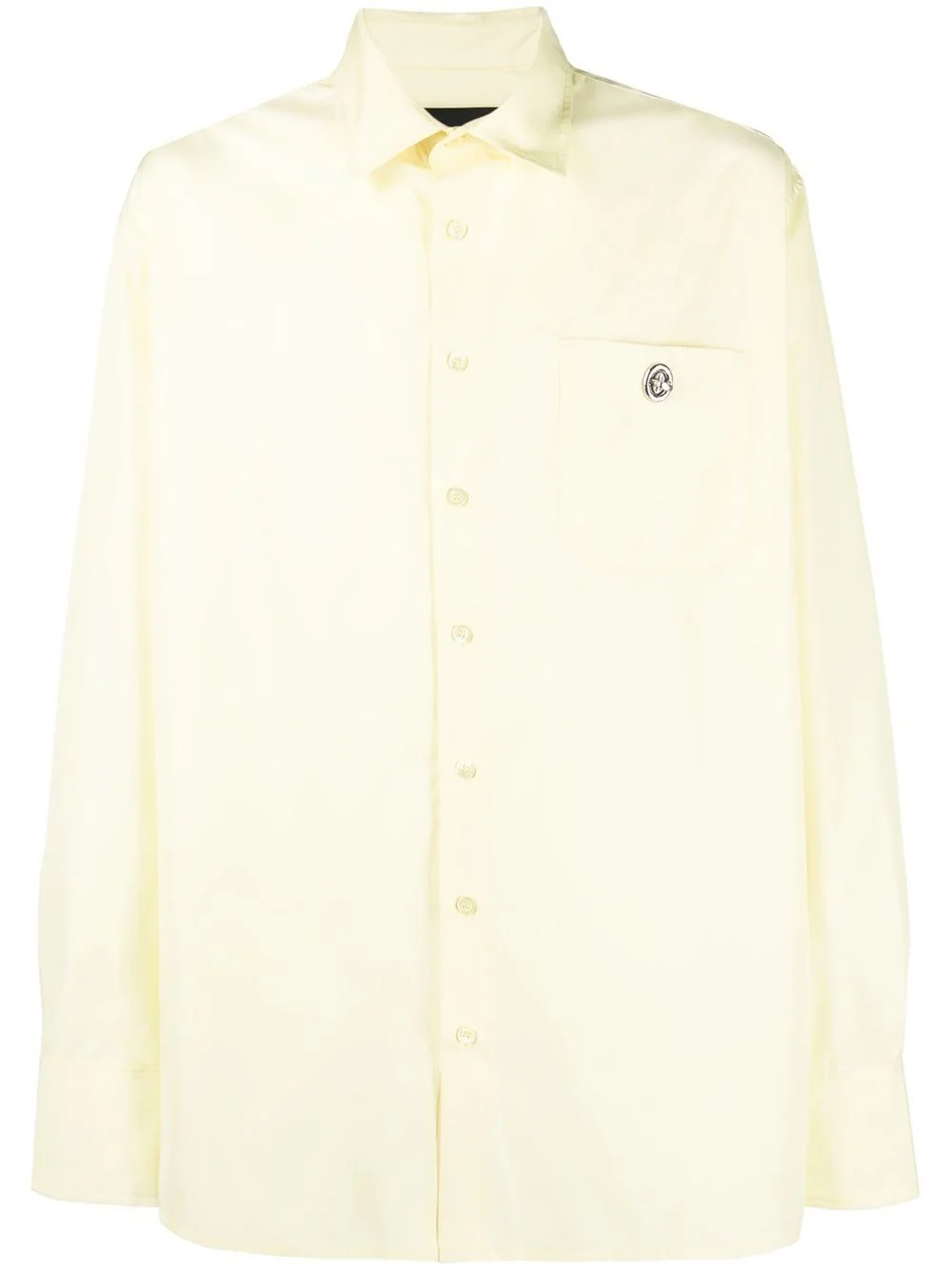 plain long-sleeve shirt Highlights - Light yellow - Recycled polyester - Silver-tone logo plaque - Classic collar - Front button fastening - Long sleeves - Straight hem - Button-fastening chest pocket Imported Composition Recycled Polyester 100% SIZE & FIT Model measurements Height 6 ft 2 in(1.89 m) Bust/Chest 37.79 in(96 cm) Hips 37 in(94 cm) Waist 29.92 in(76 cm) FittingInformation This piece fits true to size. We recommend you get your regular size Cut for a loose fit Made with a mid-weight non-stretch fabric Washing instructions Dry Clean Only