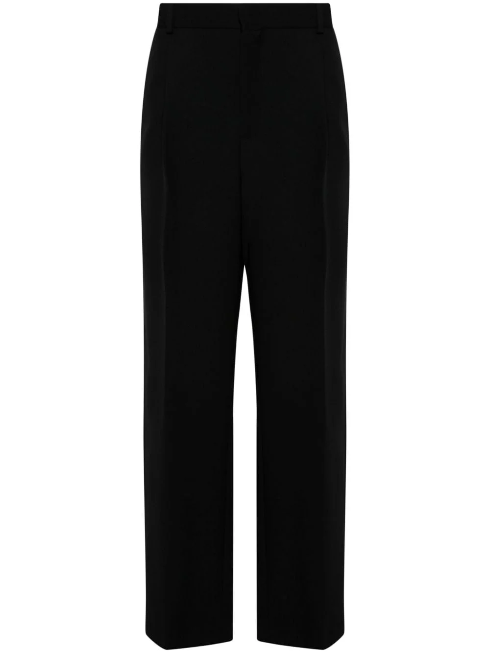 straight-leg trousers Highlights - Black - Virgin wool - Twill weave - Concealed front button, hook and zip fastening - Belt loops - Pleat detailing - Two diagonal pockets to the sides - Dart detailing - Two rear jetted pockets - Unlined - Straight leg Imported Composition Virgin Wool 100% SIZE & FIT Model measurements Height 6 ft 2 in(1.87 m) Bust/Chest 37.79 in(96 cm) Hips 37.79 in(96 cm) Waist 30.31 in(77 cm) FittingInformation Designed for a straight-leg, allowing for an unrestricted and comfortable fit over the leg Made from a midweight non-stretch fabric