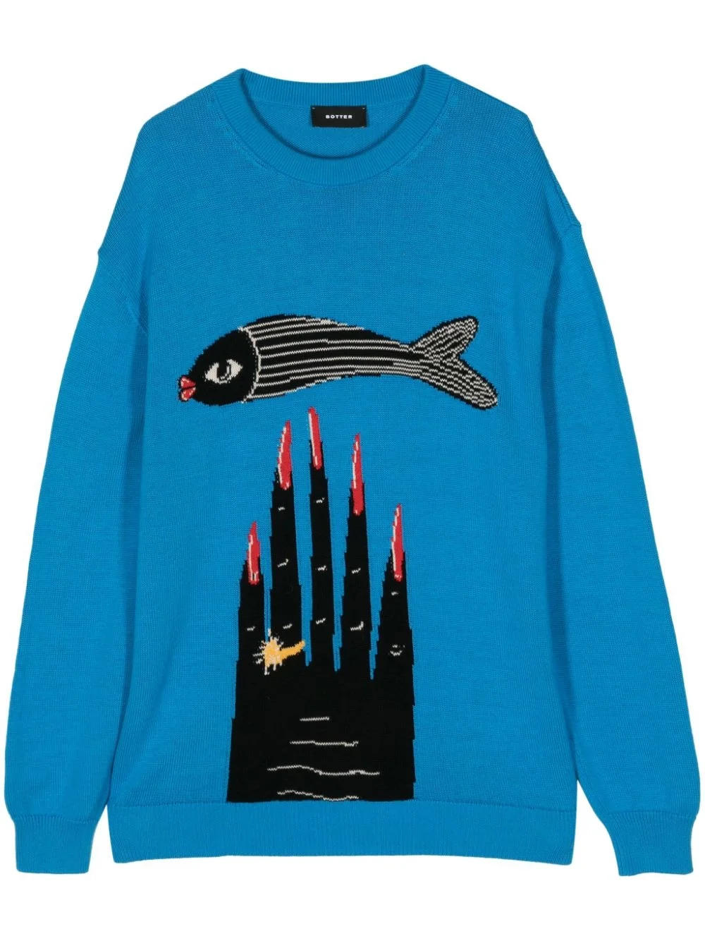 Powerful Hand-intarsia cotton-cashmere jumper Highlights - Cobalt blue - Cotton-cashmere blend - Knitted construction - Intarsia-knit powerful hand graphic to the front - Crew neck - Drop shoulder - Long sleeves - Straight hem - Ribbed trim Imported Composition Cotton 85%, Cashmere 15%