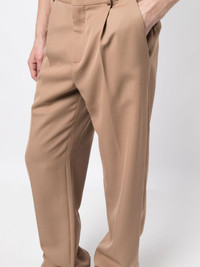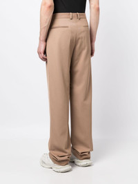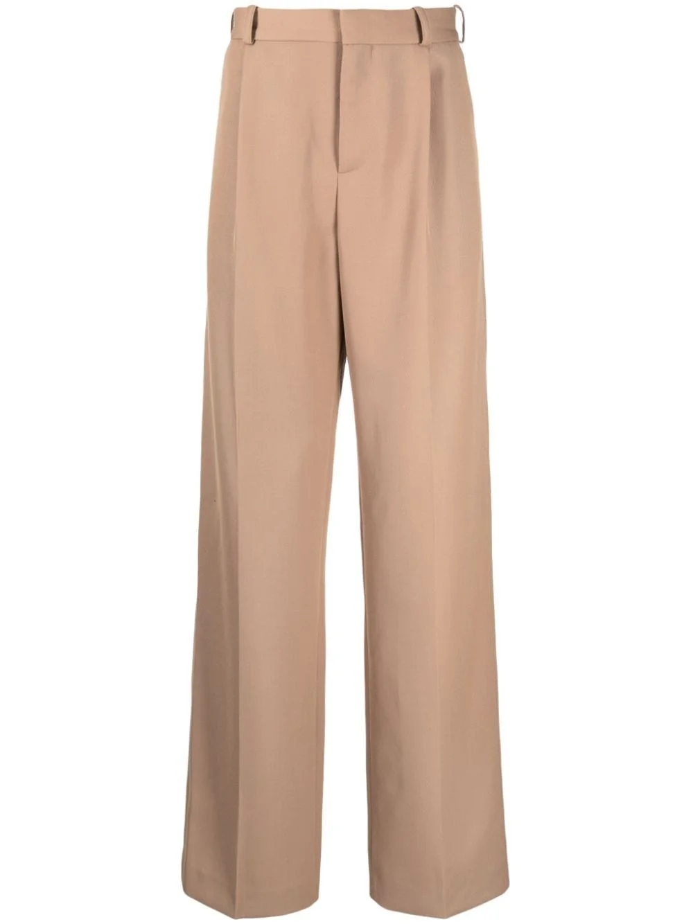 pressed-crease wide-leg trousers Highlights - Khaki - Cotton - Wide leg - Pressed crease - Concealed fly and button fastening - Belt loops - Long length - Two side slash pockets - Two rear jetted pockets Imported Composition Body: Polyester 55%, Virgin Wool 45% Cotton 100% SIZE & FIT Model measurements Height 6 ft 2 in(1.89 m) Bust/Chest 37.4 in(95 cm) Hips 36.61 in(93 cm) Waist 28.34 in(72 cm) FittingInformation Designed for a straight-leg, allowing for an unrestricted and comfortable fit over the leg Made from a midweight non-stretch fabric This piece fits true to size – take your usual size Washing instructions Dry Clean Only