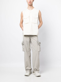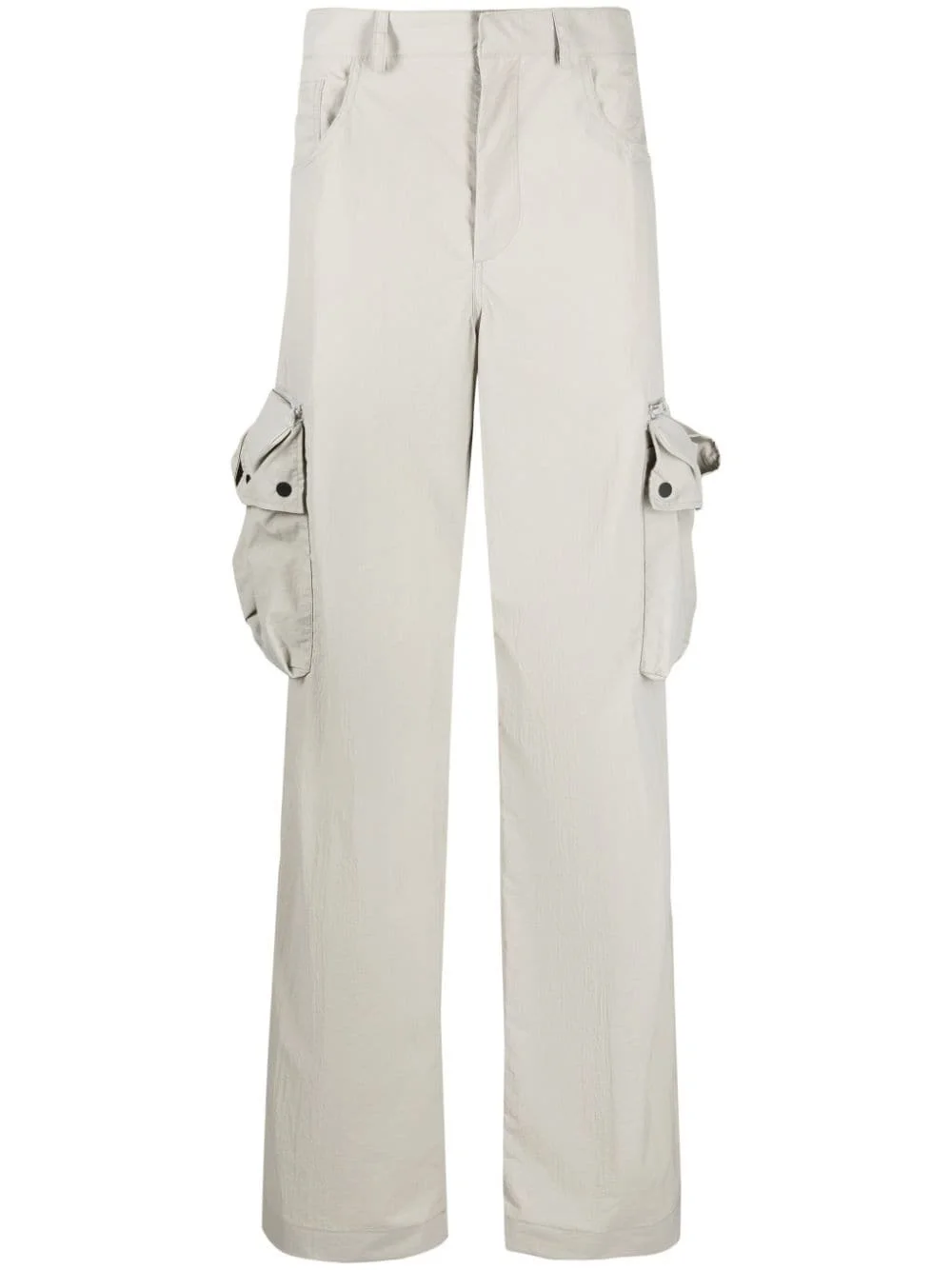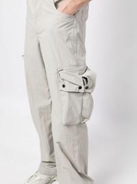 ripstop cotton cargo pants Highlights - Chalk white - Cotton - Ripstop texture - Wide leg - Belt loops - Concealed fly and button fastening - Two side cargo pockets - Two side slash pockets - Two rear patch pockets Imported Composition Body: Polyamide 100% Cotton 100% SIZE & FIT Model measurements Height 6 ft 2 in(1.89 m) Bust/Chest 37.4 in(95 cm) Hips 36.61 in(93 cm) Waist 28.34 in(72 cm) FittingInformation Designed for a straight-leg, allowing for an unrestricted and comfortable fit over the leg Made from a lightweight non-stretch fabric This piece fits true to size – take your usual size Measurement FRONT RISE 14.48 in(36.8 cm) INSIDE LEG 34.01 in(86.4 cm) BACK RISE 14.48 in(36.8 cm) HIPS 40 in(101.6 cm) Hem Width 20 in(50.8 cm) WAIST 34.01 in(86.4 cm) Washing instructions Dry Clean Only