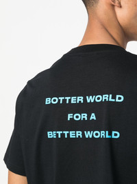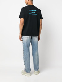 slogan-print crew-neck T-shirt Highlights - Jet black - Organic cotton blend - Logo print at the chest - Slogan print to the rear - Crew neck - Short sleeves - Straight hem Imported Composition Organic Cotton 80%, Seacell 20% SIZE & FIT Model measurements Height 6 ft 2 in(1.87 m) Bust/Chest 38.18 in(97 cm) Hips 36.61 in(93 cm) Waist 29.13 in(74 cm) FittingInformation Designed for a regular fit allowing for a comfortably loose fit throughout the body Made from a midweight non-stretch fabric, this piece offers minimal elasticity when worn This piece fits true to size – take your usual size
