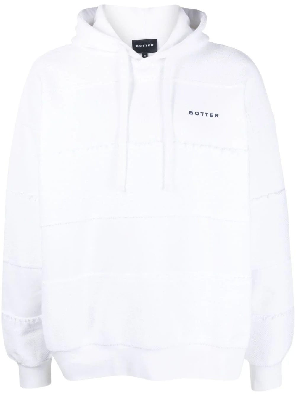 logo-print drawstring hoodie Highlights - White - Organic cotton - Logo print at the chest - Drawstring hood - Long sleeves - Ribbed cuffs and hem Imported Composition Organic Cotton 100% SIZE & FIT FittingInformation Designed to be unstructured, offering a loose fit throughout Made from a midweight non-stretch fabric, this piece offers minimal elasticity when worn This piece fits true to size – take your usual size Washing instructions Machine Wash