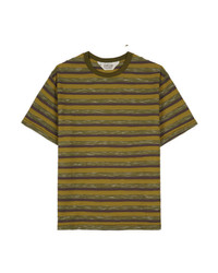 DETAILS Our short sleeve Casey striped t-shirt built for daily wear, crafted from lightweight cotton jersey with textured stripes stitched together for added depth. Designed with a solid ribbed collar, relaxed fit. Material: 100% Cotton Color: Moss