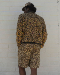 DETAILS Our button-up cropped chore jacket with mesh front pockets and a ribbed collar. The cropped, boxy fit offers a silhouette ideal for layering. Finished with contrast binding throughout and a woven Brain Dead patch on the front chest pocket. Boxy cropped fit. Size down for more traditional fit. Material: 100% Cotton Color: Leopard