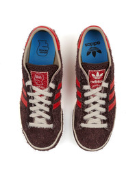 DETAILS This item is in US men's sizing. The adidas Forest Hills trainer was first released in 1976. This silhouette first debuted at one of the biggest tennis tournaments in the Queens, New York neighborhood the shoes get their name from. We paired with adidas to reinterpret the classic pair. Still a low-profile silhouette, they have a hairy suede upper that features 3-Stripes, visible stitching at the heel tab and an Ecotex tongue. Material: 100% Leather Color: Brown / Red