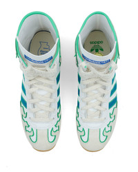 DETAILS This item is in US men's sizing. We revisited the adidas Japan Hi, originally inspired by 1980s boxing boots and brought it into our world. Layered suede flame forms stitched onto the toe box, heel foxing and leather upper. Leather upper with toe box perforations Classic 3‑Stripes branding Slim, flexible outsole Color: White/Green