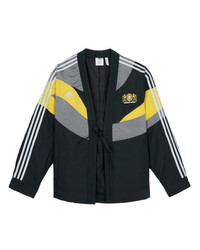 DETAILS Our Japanese Noragi-inspired Track Jacket with adidas. Offers a thick but comfortable, structured fit and classic tie-front closure. Finished with an embroidered crest, zippered pockets and contrast striping down the sleeves. Material: 100% recycled polyester Color: Black