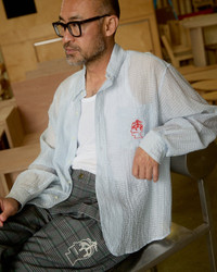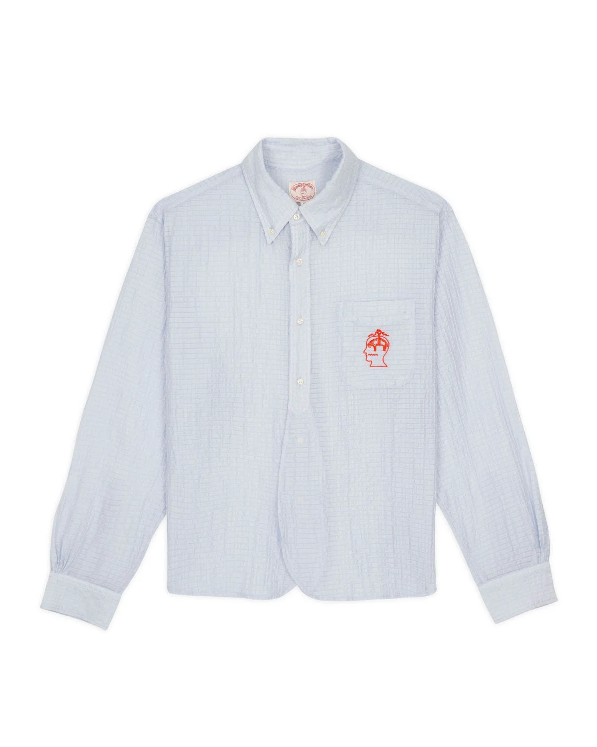DETAILS Our cotton oxford long sleeve half button up with Brooks Brothers. Features the signature Brooks Brothers collar and cuffs, an irregular placket, and embroidered logohead on the pocket. Fabric sourced from Japan. Material: 77% Polyester / 23% Rayon Color: Ice BROOKS BROTHERS CALIFORNIA is our take on the idea that this historical brand was not just about suits and shirts, but about the American dream of innovation and creativity. BROOKS BROTHERS CALIFORNIA is not just a repro of Ivy Style, but an attempt to break tradition, adding personal identity to the classic American style.