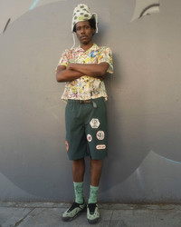 DETAILS Our nylon baggy climber shorts with custom Brain Dead belt webbing and embroidered felt artwork patches on both legs. Features an embroidered feet patch for added detail. Designed with a 9 3/4" inseam for a relaxed fit. Material: 100% Nylon Color: Forest Green