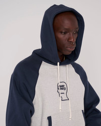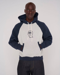 DETAILS Our raglan pullover hoodie with logohead embroidery. Material: 100% Cotton Fleece Color: Oatmeal / Navy