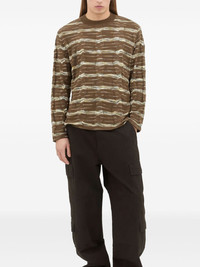 cotton textured sweatshirt Highlights - Brown - Crew neck - Long sleeves - Straight hem - Horizontal stripe pattern Imported Composition Cotton 70%, Viscose 30% Washing instructions Dry Clean Only