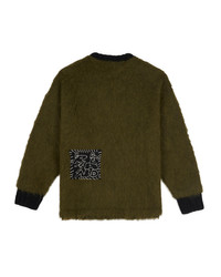 DETAILS Our Peru knit alpaca sweater with cropped boxy fit, brushed wool, stitched patches, and custom pins. Material: 89% Alpaca / 11% Polyamide Color: Olive Made in Peru.