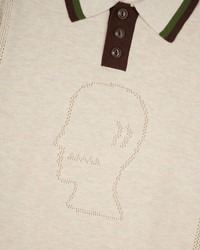 DETAILS Our short sleeve logo pointelle polo shirt with a contrasting collar and buttons. The pointelle knit on the sleeves adds texture and breathability. Finished with ribbing along the sleeve openings and a logo head on the front center. Material: 100% Cotton Color: Natural