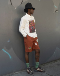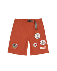 DETAILS Our nylon baggy climber shorts with custom Brain Dead belt webbing and embroidered felt artwork patches on both legs. Features an embroidered feet patch for added detail. Designed with a 9 3/4" inseam for a relaxed fit. Material: 100% Nylon Color: Rust
