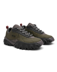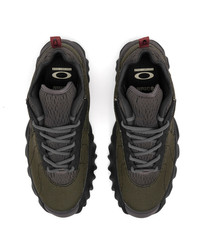 DETAILS This item is in US Men's sizing. Runs big, recommended half size down. The Oakley Factory Team Jacquard Chop Saw combines distinctive black and yellow Moron fabric on the front and back panel with a dark gull gray mesh tongue and dark gull gray mesh lining. Blue graphite eyelets and a rubber phantom-shaded outsole define the fresh details of a shoe that will take you anywhere. Material: 100% Polyester Color: Graphite / Green