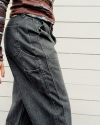 DETAILS Our pre-washed wide leg carpenter-style denim pant with front slant pockets, double knee panels, and signature Brain Dead back pocket detailing. Denim sourced from Japan. Cut and sewn in Los Angeles, CA. Care: Wash in cold water and hang dry, shrinking may occur Material: 100% Cotton Color: Washed Black