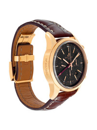 Transocean 43mm Highlights - Pre-owned - 43mm - Black - Round face - Baton dial - Arabic dial - Baton hands - Sweeping second hand - Chronograph counters - Two chronograph pushers - Screw-down crown - Skeleton case back - 18kt rose gold - Alligator leather strap - Folding clasp - Automatic movement - Water resistance up to 100m/10 atm - Original box and papers included. - Condition: excellent. this previously owned item is in near-perfect condition with no signs of damage or use. - Hallmarked in the united kingdom at the london assay office. - Normal everyday use and external agents may reduce the lustre of gemstones and gold surfaces. to maintain, use specific, non-abrasive products specially meant for cleaning jewellery. - Unfortunately, we are unable to ship this item outside of the us. - This item comes with a standard one-year warranty from the boutique. Imported Composition Alligator Leather 100%, 18kt Rose Gold 100% SIZE & FIT Measurement Case size 1.69 in(43 mm) Case thickness 0.62 in(16 mm) Strap width 0.86 in(22 mm)