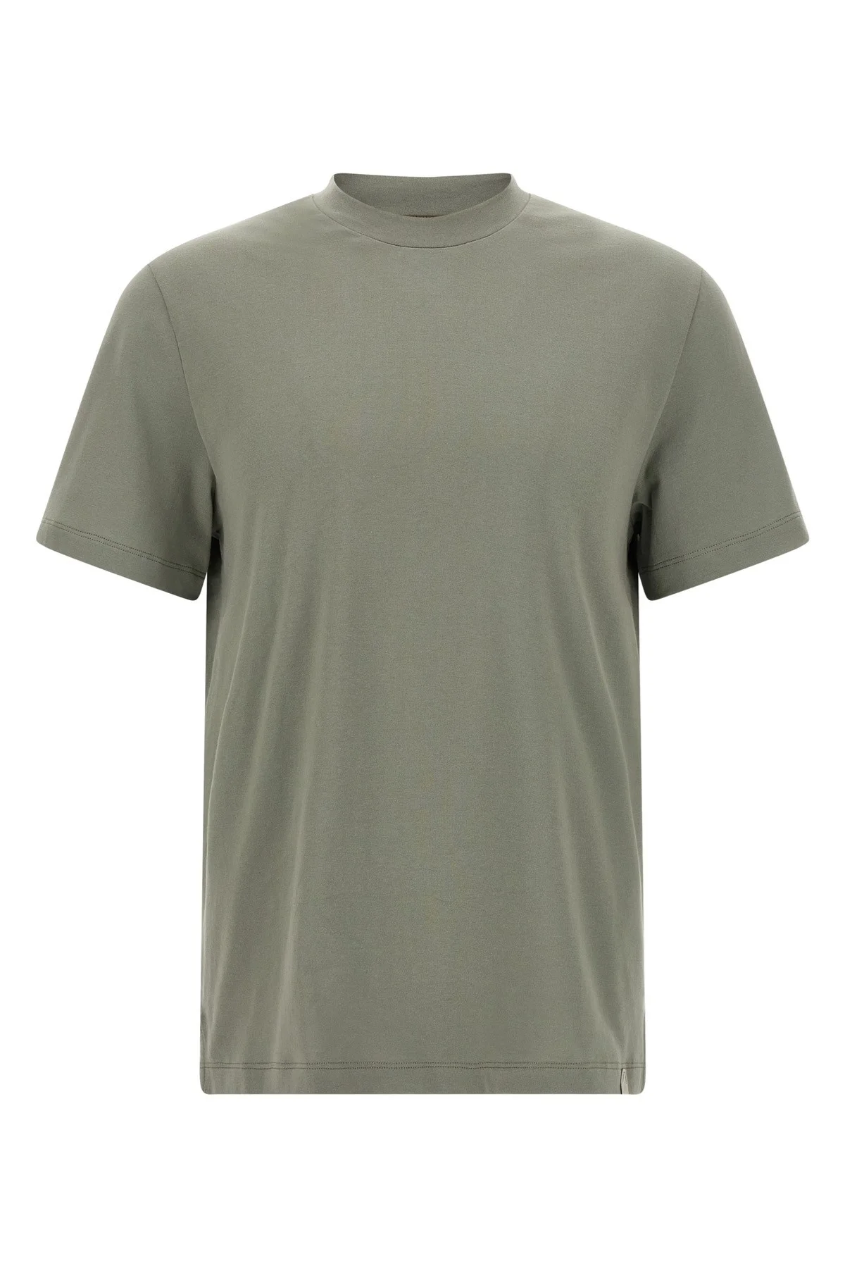 cod. UJSY0LOD6201616 Carbonated cotton T-shirt, tone-on-tone leather fly with front embossed logo, crew neck, short sleeves, side slits. SUSTAINABLE: This garment contains GOTS certified cotton. The Global Organic Textile Standard (GOTS) is a voluntary standard obtained through independent third-party verification. Color: Green Size & Fit: true to size fit Composition: 100% cotton Made in: Italy