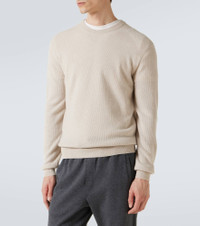Product Details - Material: 64% cashmere, 36% wool - Care instructions: dry clean - Made in Italy - Designer color name: Beige/White - Item color: beige - Sleeves: long-sleeved - Cuff: ribbed - Hem: straight, ribbed - Collar: crewneck - Contains non-textile parts of animal origin - Item number: P01048020 Size & Fit - True to size - Straight fit - Stretchy fabric - Falls to the hip - The model in the picture is 185cm-6'1" and wearing a size IT 50