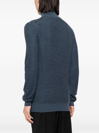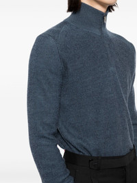 half-zip jumper Highlights - Midnight blue - Cashmere blend - Wool-silk blend - Ribbed knit - Mock neck - Half front zip fastening - Long sleeves - Ribbed cuffs and hem Made in Italy Composition Cashmere 43%, Wool 39%, Silk 18% SIZE & FIT Model measurements Height 6 ft 2 in(1.87 m) Bust/Chest 33.07 in(84 cm) Hips 35.43 in(90 cm) Waist 26.77 in(68 cm) FittingInformation Designed for a regular fit, offering a comfortable loose fit throughout the body The ribbed hem offers a close, comfortable fit Made with a midweight knit, this piece offers some stretch This piece fits true to size – take your usual size