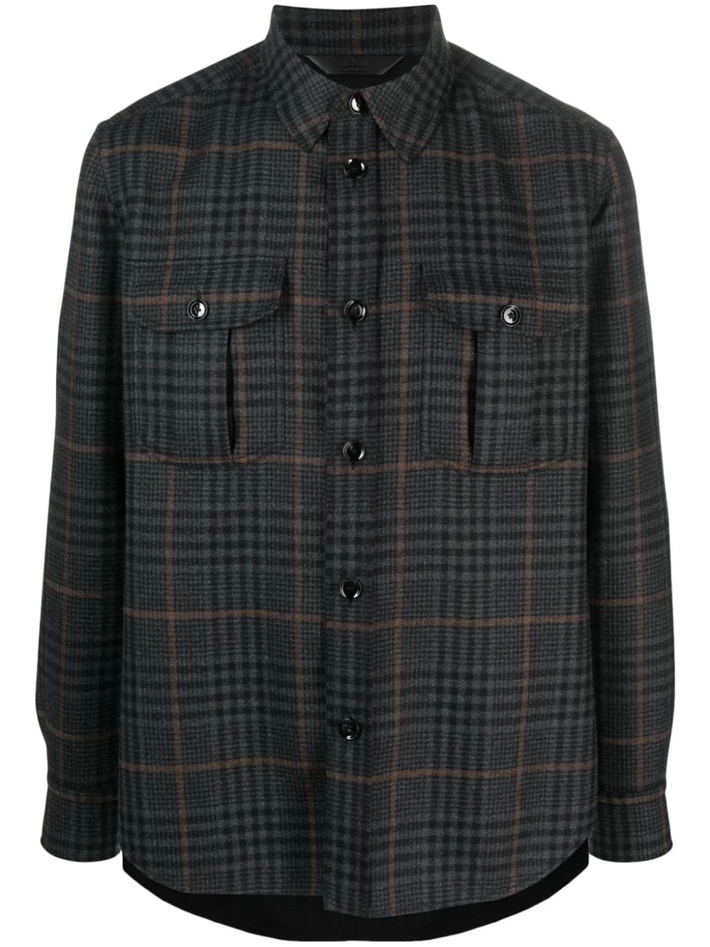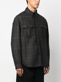 check-print knitted shirt jacket Highlights - Black - Virgin wool blend - Lambskin - Two front flap pockets - Front button fastening - Classic collar - Long sleeves - Rear curved hem Made in Italy Composition Lamb Skin 100%, Virgin Wool 99%, Silk 1% SIZE & FIT Model measurements Height 6 ft 1 in(1.86 m) Bust/Chest 37.4 in(95 cm) Hips 34.64 in(88 cm) Waist 29.13 in(74 cm) FittingInformation Designed for a boxy fit, intended for a loose fit throughout Made from a midweight non-stretch fabric This piece fits true to size – take your usual size Washing instructions Dry Clean Only