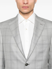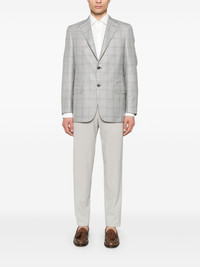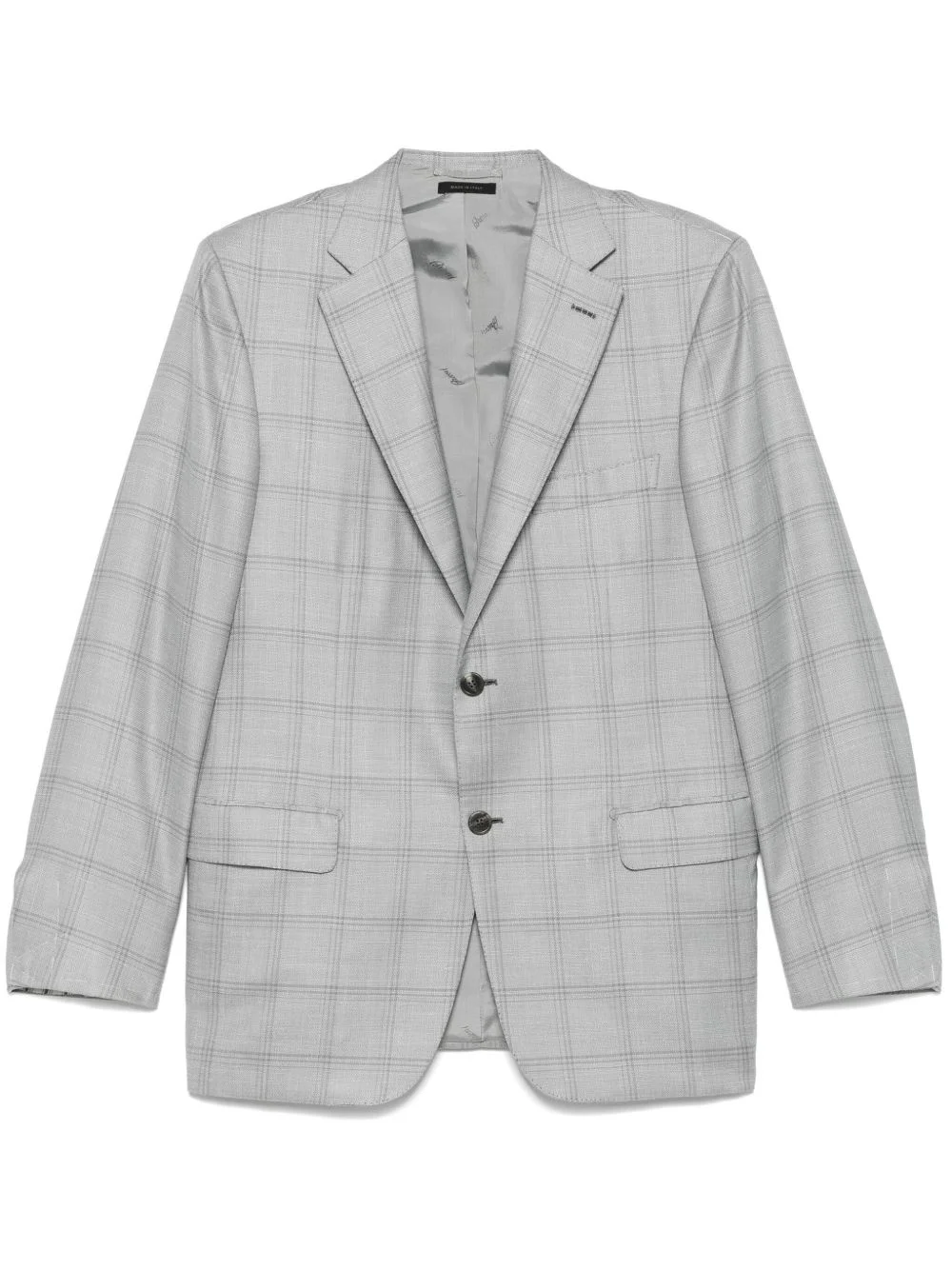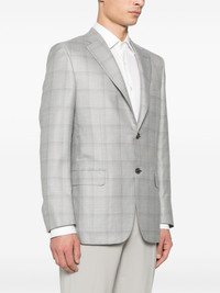 checked blazer Highlights - Grey - Front button fastening - Chest welt pocket - Two side flap pockets - English rear vents Made in Italy Composition Outer: Wool 43%, Silk 32%, Cashmere 17%, Linen/Flax 8% Lining: Cotton 100%, Cupro 100% SIZE & FIT Model measurements Height 6 ft 1 in(1.85 m) Bust/Chest 35.82 in(91 cm) Hips 37.79 in(96 cm) Waist 29.13 in(74 cm) FittingInformation Designed for a slim fit, offering a comfortable fit that sits just away from the body The internal shoulder pads offer a structured shape Made from a midweight non-stretch fabric
