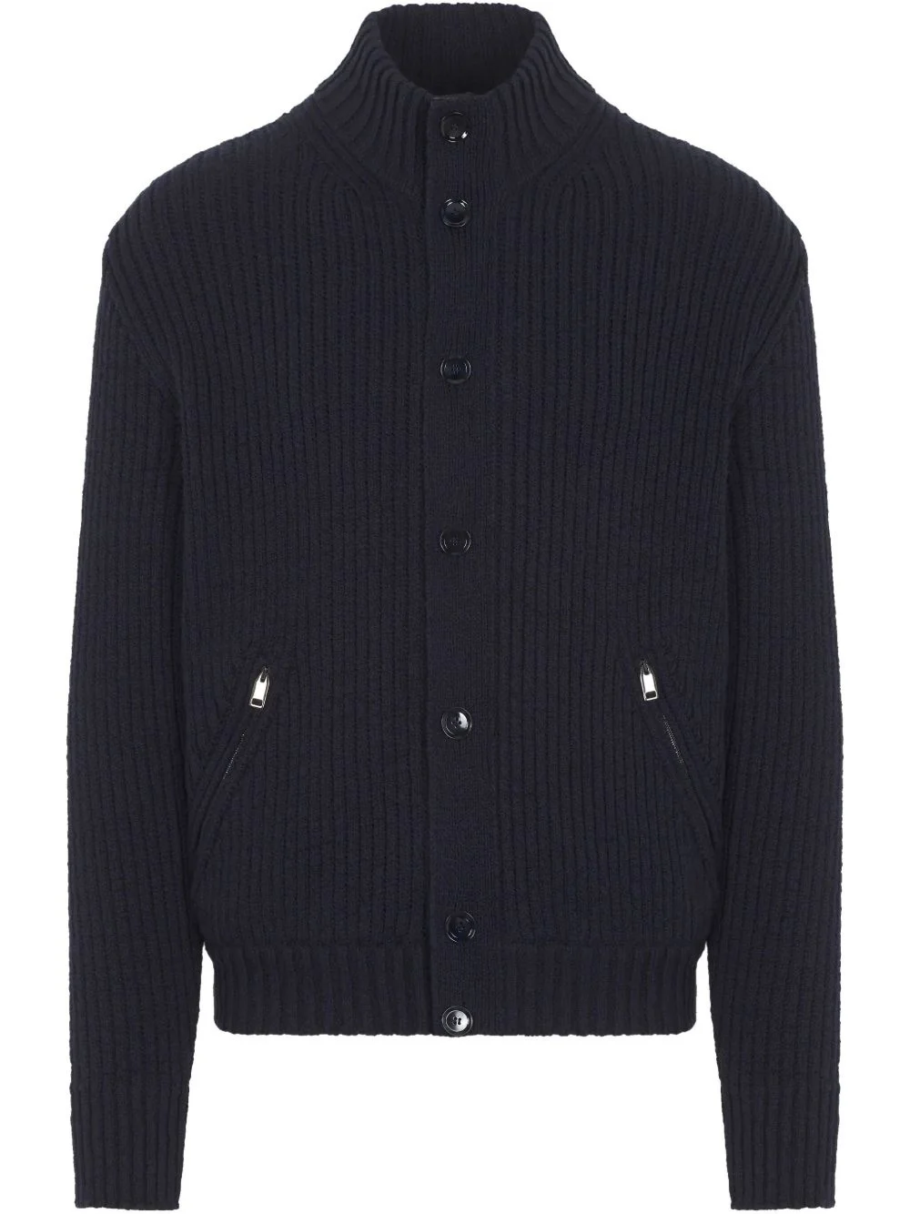 chunky-knit cardigan Highlights - Navy blue - Ribbed knit - Front button and zip fastening - Two zip-fastening pockets Made in Italy Composition Body: Cotton 100% Lambskin 100%