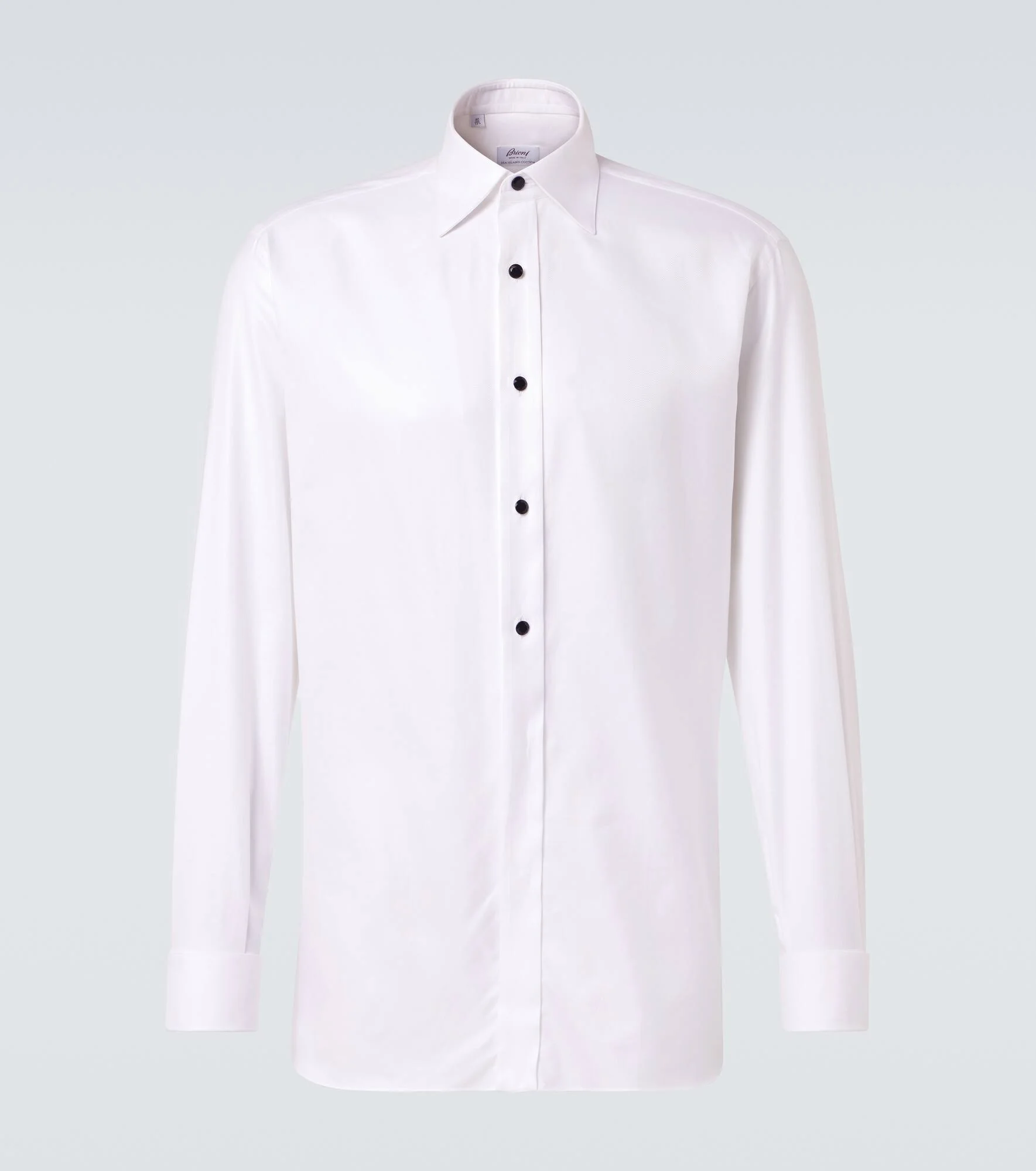 Product Details - Material: 100% cotton - Care instructions: machine wash at 30 degrees - Made in Italy - Designer color name: White - Item color: white - Length: regular (hip-length) - Sleeves: long-sleeved - Closure: buttoned front - Cuff: French round - Hem: rounded - Collar: classic (Straight point) - Item number: P01048006 Size & Fit - True to size - Without pleats in the back - Classic fit - Non-stretchy fabric - Falls below the hip - The model in the picture is 185cm-6'1" and wearing a size EU 41