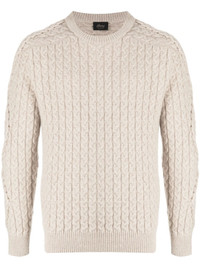 crew-neck cable-knit jumper Highlights - Beige - Cashmere-silk blend - Cable knit - Crew neck - Long sleeves - Ribbed cuffs and hem Made in Italy Composition Cashmere 86%, Silk 14% SIZE & FIT Model measurements Height 6 ft 2 in(1.87 m) Bust/Chest 34.25 in(87 cm) Hips 36.22 in(92 cm) Waist 29.52 in(75 cm)