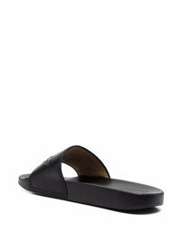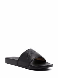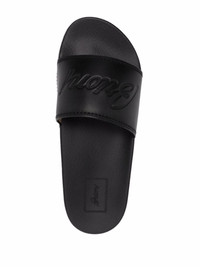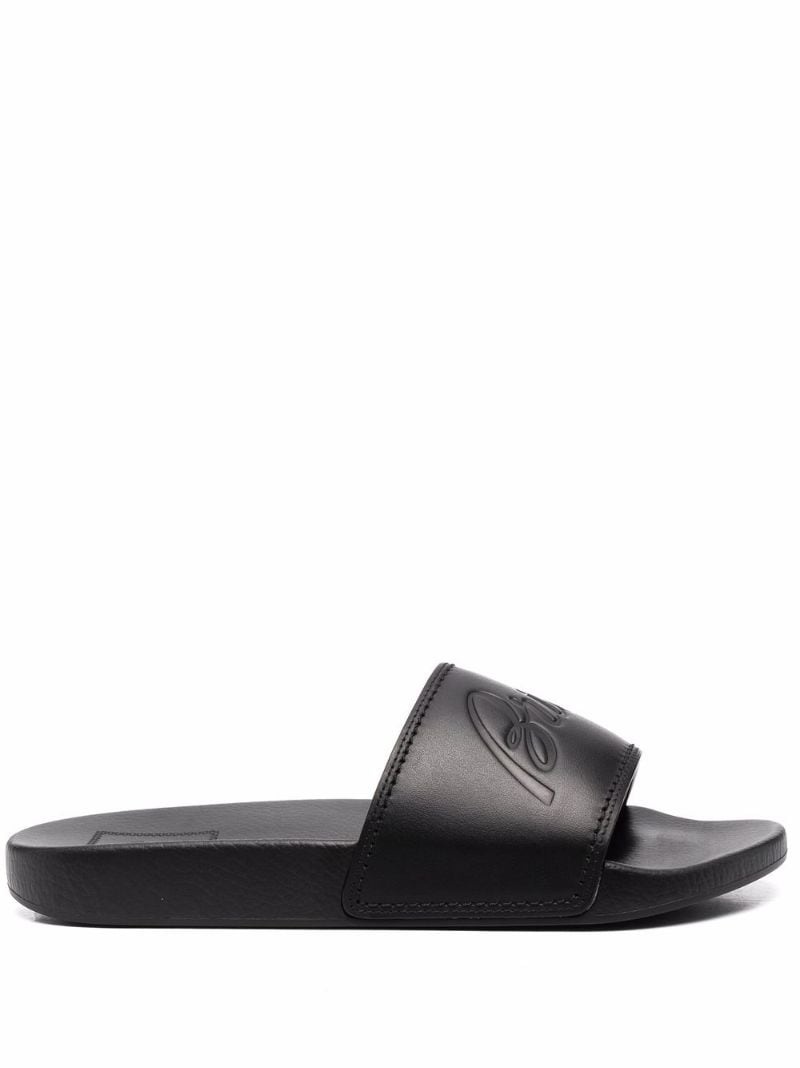 debossed-logo slides Black leather debossed-logo slides from Brioni featuring tonal design, debossed logo to the front, open toe, slip-on style, branded insole and flat rubber sole. Made in Italy Composition Sole: Rubber 100% Lining: Rubber 100% Outer: Calf Leather 100% SIZE & FIT Measurement HEEL 1.2 in(3 cm) Sole height 0.6 in(1.5 cm)