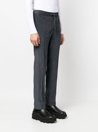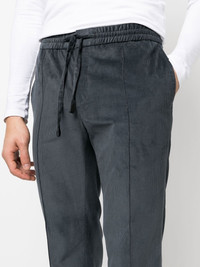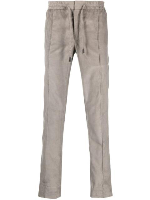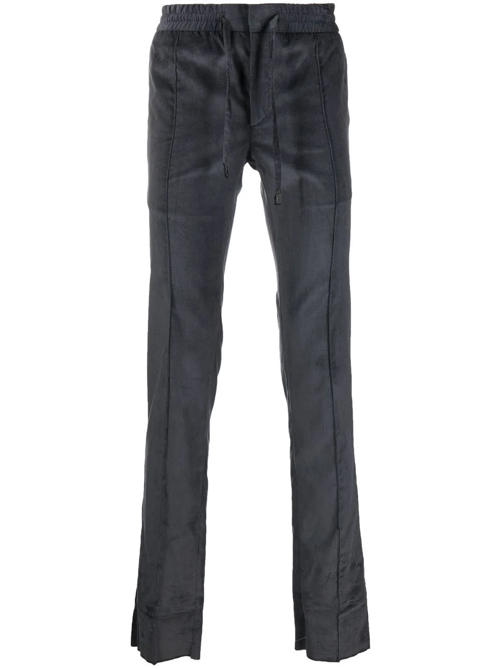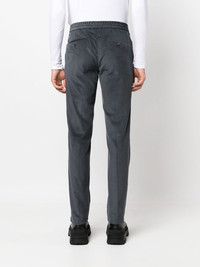 drawstring-waist trousers dark grey cotton/goatskin elasticated drawstring waistband two side slit pockets two rear welt pockets slim cut Made in Italy Composition Lining: Cotton 50%, Modal 50% Outer: Cotton 100%, Goat Skin 100% SIZE & FIT Model measurements Height 6 ft 2 in(1.87 m) Bust/Chest 36.41 in(92.5 cm) Hips 35.43 in(90 cm) Waist 29.52 in(75 cm) FittingInformation This piece fits true to size. We recommend you get your regular size Cut for a slim fit Made with a mid-weight fabric Washing instructions Machine Wash