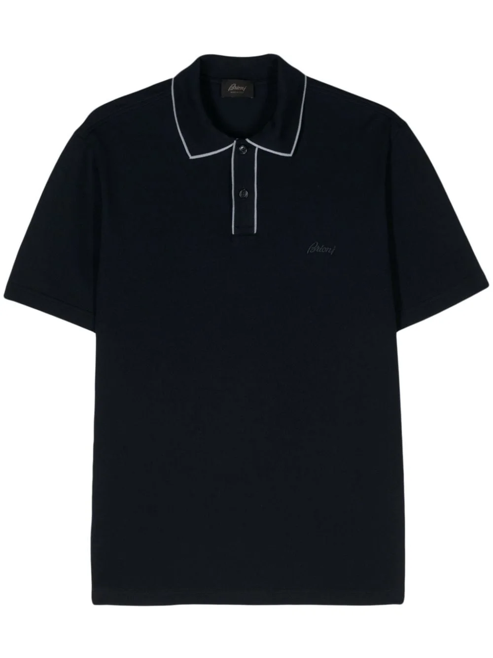logo-embroidered cotton polo shirt Highlights - Midnight blue - Cotton - Pique weave - Contrasting trim - Embroidered logo at the chest - Polo collar - Front button placket - Short sleeves - Straight hem Made in Italy Composition Cotton 100% SIZE & FIT Measurement CHEST 46.45 in(118 cm)
