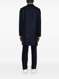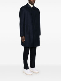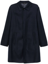 felted coat Highlights - Navy blue - Wool-silk blend - Twill weave - Felted finish - Concealed front button fastening - Classic collar - Long sleeves - Buttoned cuffs - Two front welt pockets - American rear vent - Partial lining - Straight hem Made in Italy Composition Outer: Wool 99%, Silk 1% Lining: Cupro 100%, Cotton 100%, Lambskin 100% SIZE & FIT Model measurements Height 6 ft 0 in(1.84 m) Bust/Chest 35.82 in(91 cm) Hips 37 in(94 cm) Waist 28.34 in(72 cm) FittingInformation Designed to be unstructured, offering a loose fit throughout The vented hem offers movement at the rear Made from a midweight non-stretch fabric Washing instructions Dry Clean Only
