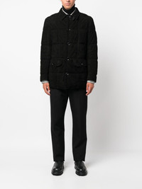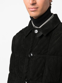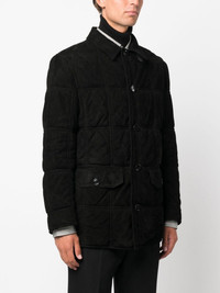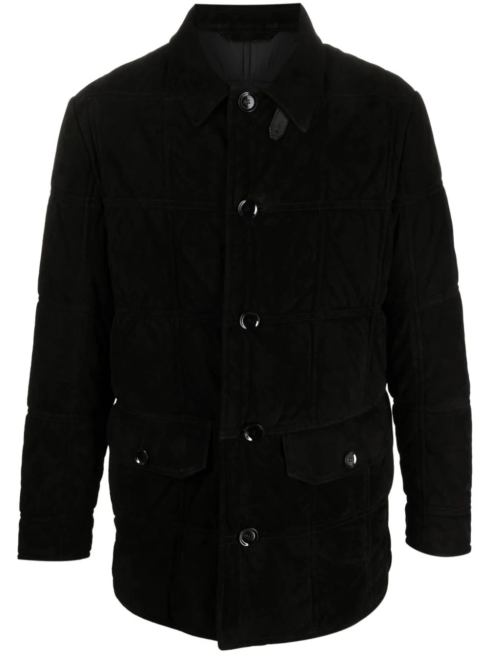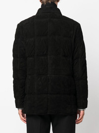 funnel-neck button-up jacket Introducing Brioni's quilted jacket, a testament to the brand's commitment to exceptional craftsmanship and timeless design. This sophisticated piece features a funnel neck and leather trim, providing an air of refinement to the classic silhouette. Highlights - Black - Leather trim - Quilted finish - Funnel neck - Front button fastening - Long sleeves - Two side flap pockets - Straight hem Made in Italy Composition Lining: Polyester 100% Outer: Calf Leather 100%, Polyester 100% SIZE & FIT Model measurements Height 6 ft 1 in(1.85 m) Bust/Chest 35.43 in(90 cm) Hips 35.82 in(91 cm) Waist 27.55 in(70 cm) FittingInformation Designed for a slim fit, offering a comfortable fit that sits just away from the body Suede leather has a soft and treated construction offering some flexibility This piece fits true to size – take your usual size Washing instructions Dry Clean Only