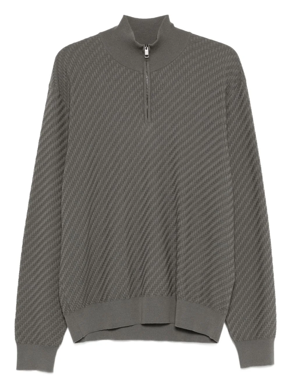 half-zip sweater Highlights - Grey - Half-zip neck - Long sleeves - Ribbed hem - Ribbed cuffs Made in Italy Composition Cotton 57%, Silk 34%, Cashmere 9% Washing instructions Dry Clean Only