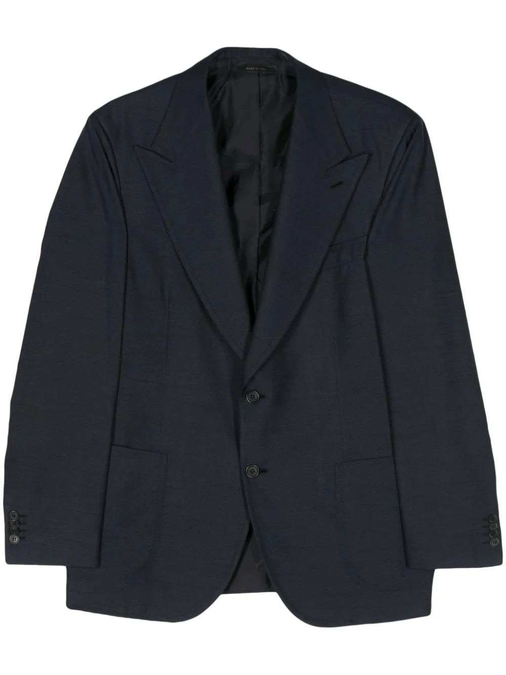 interwoven silk blazer Highlights - Midnight blue - Silk - Interwoven design - Dart detailing - Peak lapels - Shoulder pads - Long sleeves - Faux-buttoned cuffs - English rear vents - Chest welt pocket - Two front patch pockets - Three internal jetted pockets - Front button fastening - Curved hem - Logo-jacquard lining Made in Italy Composition Lining: Cotton 100%, Cupro 100% Outer: Silk 100%