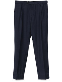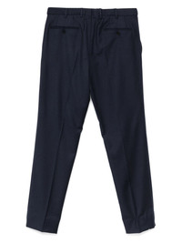 Journey trousers Highlights - Navy blue/black - Wool blend - Flannel - Brushed finish - Puppytooth pattern - Concealed front button, hook and zip fastening - Off-centre front fastening - Belt loops - Pleat detailing - Two diagonal pockets to the sides - Pressed crease - Rear dart detailing - Two rear button-fastening jetted pockets - Tapered leg Made in Italy Composition Outer: Wool 95%, Cashmere 5% Lining: Cupro 100%, Modal 50%, Cotton 50% Washing instructions Dry Clean Only