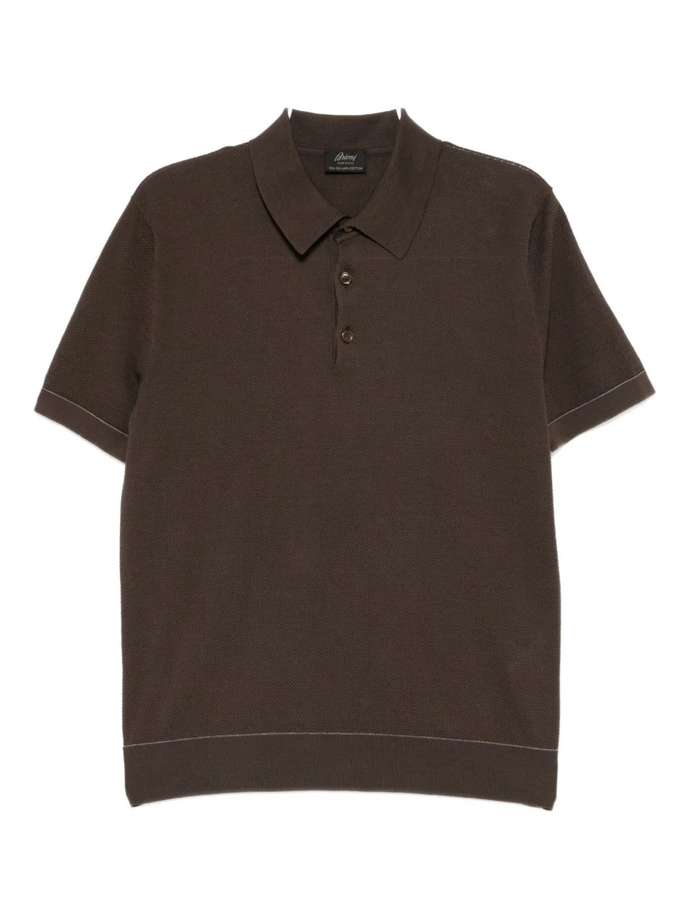 knitted polo shirt Highlights - Cedar brown - Front button fastening - Ribbed hem - Short sleeves Made in Italy Composition Cotton 100% SIZE & FIT Model measurements Height 6 ft 2 in(1.88 m) Bust/Chest 33.46 in(85 cm) Hips 36.22 in(92 cm) Waist 27.55 in(70 cm) FittingInformation Designed for a regular fit, this polo shirt offers a comfortable loose fit throughout the body The ribbed hem offers a close, comfortable fit Made with a lightweight knit, this piece offers some stretch Washing instructions Machine Wash