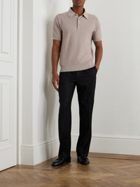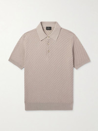 Cotton, Silk and Cashmere-Blend Polo Shirt Beige