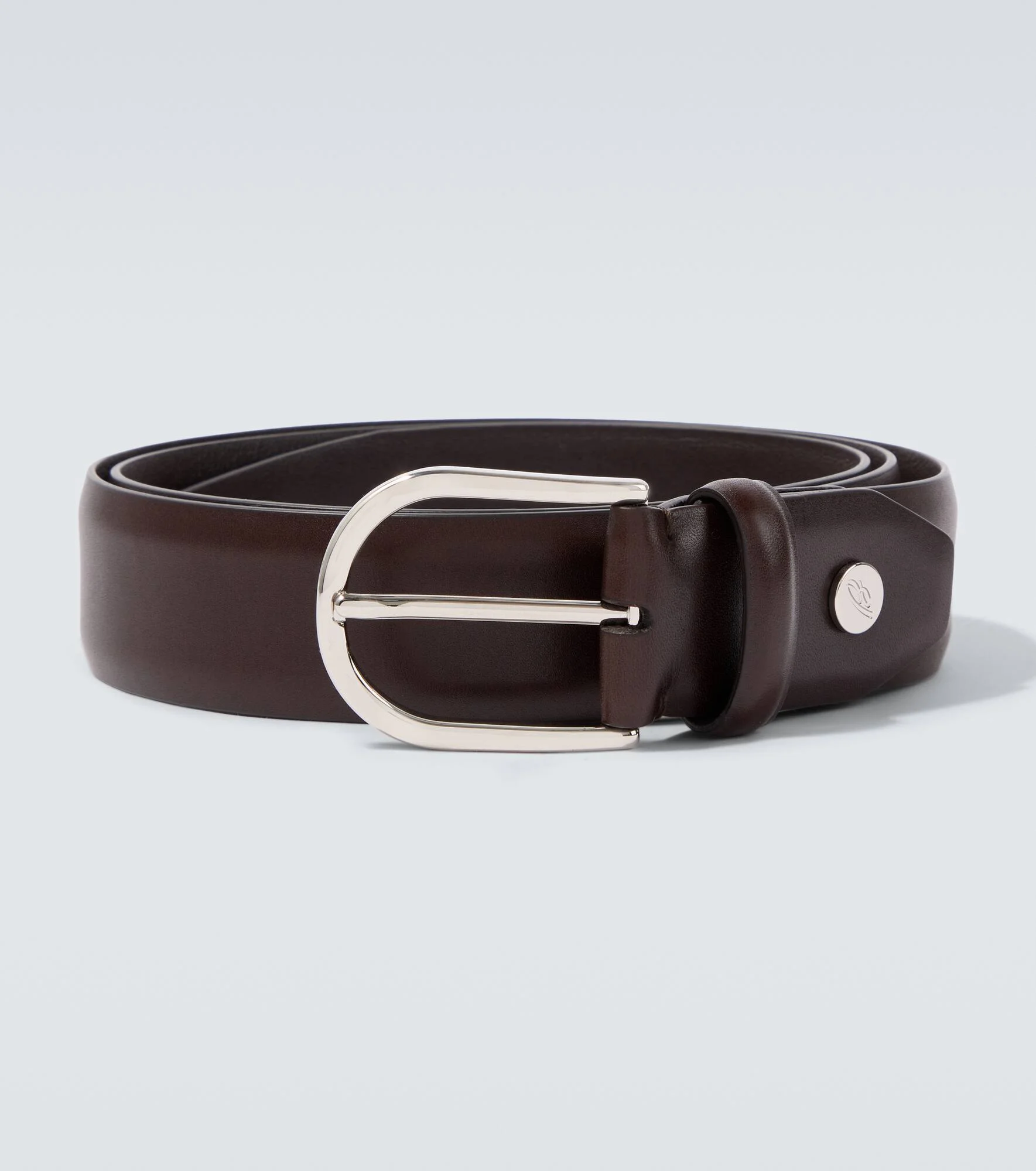 Exude sophistication in this belt from Brioni. Made in Italy, the piece is crafted from supple leather with a silver-toned buckle. Product Details - Material: leather - Lining: leather - Made in Italy - Color: brown - Designer color name: Coffee - Hardware color: silver - Includes: dust bag - Item number: P01138331 Size & Fit - Width 3,5cm-1.5" - Buckle width 4,5cm-2"