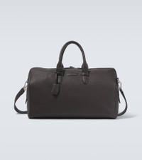 Ideal for short getaways, this duffel bag from Brioni is an elegant accessory for on-the-go style. Crafted from supple grained leather with a spacious interior and a detachable strap, it showcases the brand's meticulous quality. Product Details - Material: leather - Lining: fabric - Made in Italy - Designer color name: Dark Brown - Item color: brown - Internal details: single compartment, internal zipped pocket - Closure: two-way zipped top - Top handles, Detachable, adjustable shoulder strap - Color of fastening: silver - Hardware color: silver - Item number: P01048039 Size & Fit - Height 30cm-12" - Width 50cm-19.5" - Depth 22,5cm-9" - Length of handles 47cm-18.5" - Adjustable shoulder strap - Max. length shoulder strap 132cm-52"