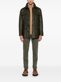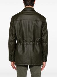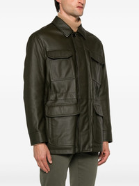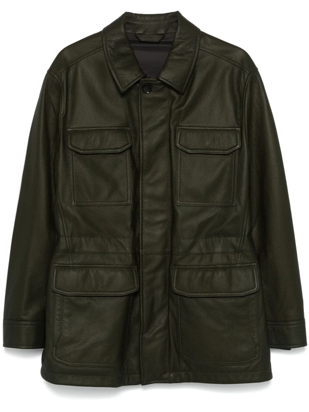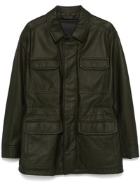 leather sahariana jacket Highlights - Olive green - Deerskin - Grained texture - Concealed front fastening - Classic collar - Long sleeves - Buttoned cuffs - Four front flap pockets - Two side slit pockets - Internal drawstring fastening waist - Full lining - Straight hem Made in Italy Composition Lining: Polyester 100% Outer: Deerskin 100% SIZE & FIT Model measurements Height 6 ft 2 in(1.87 m) Bust/Chest 37.79 in(96 cm) Hips 37.79 in(96 cm) Waist 30.31 in(77 cm) FittingInformation Designed to be unstructured, offering a loose fit throughout The adjustable drawstring means that you can adjust this piece’s fit to suit your comfort and preference Soft leather has a supple and smooth construction offering some flexibility