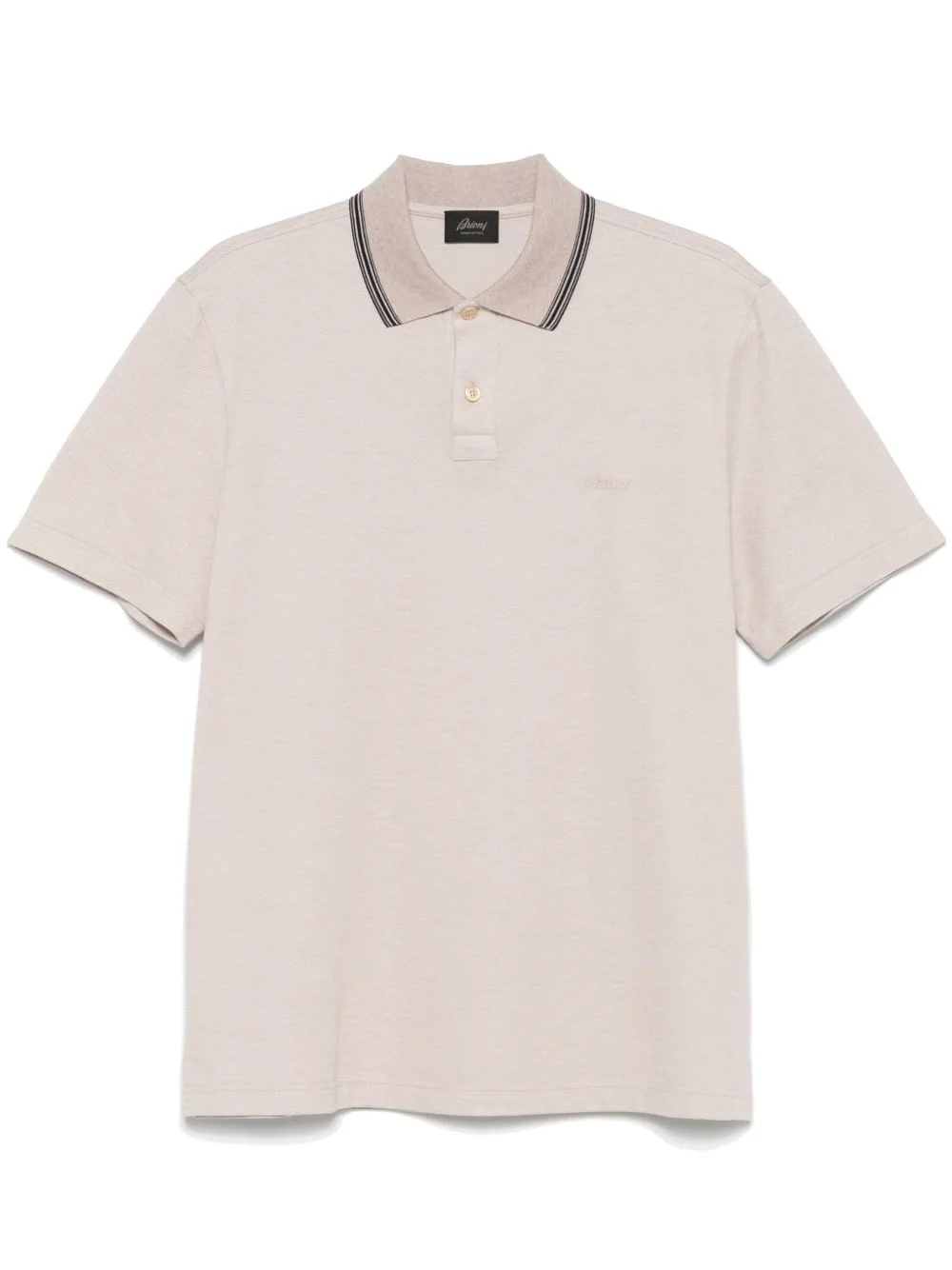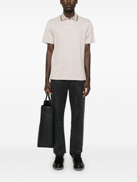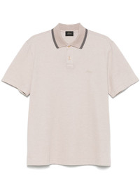 logo-embroidered polo shirt Highlights - Sand beige - Front button placket - Short sleeves - Stripe detailing Made in Italy Composition Cotton 100% SIZE & FIT Model measurements Height 6 ft 2 in(1.87 m) Bust/Chest 36.41 in(92.5 cm) Hips 37 in(94 cm) Waist 29.52 in(75 cm) FittingInformation Designed for a regular fit, this polo shirt offers a comfortable loose fit throughout the body Made from a midweight non-stretch fabric, this piece offers minimal elasticity when worn