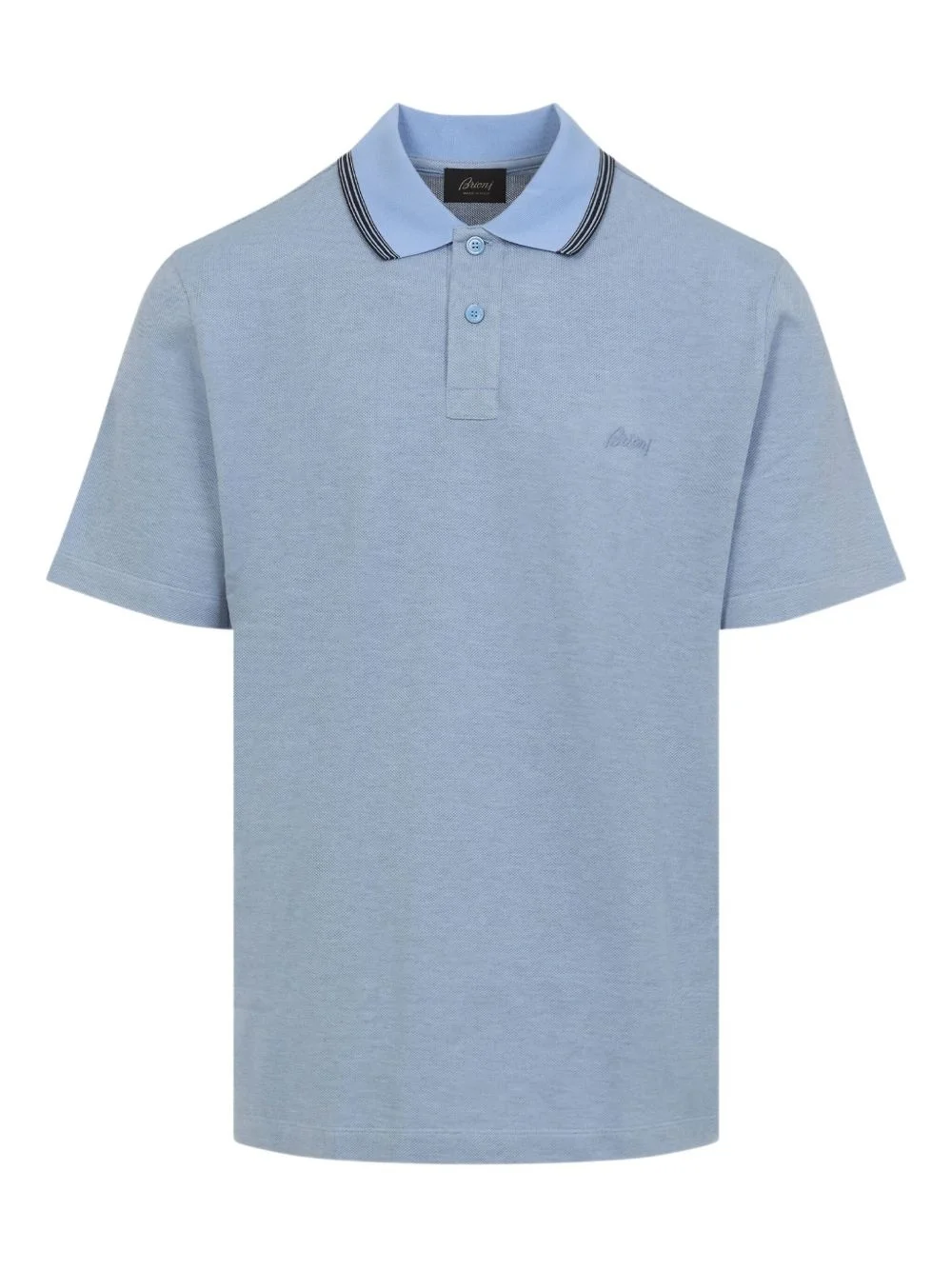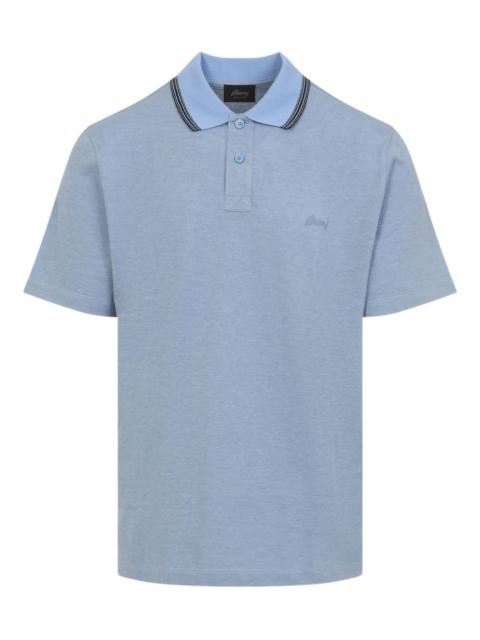 logo-embroidered polo shirt Highlights - Sky blue - Embroidered logo - Short sleeves - Contrasting polo collar - Button fastening - Cotton Made in Italy Composition Cotton 100% SIZE & FIT FittingInformation Designed for a regular fit, this polo shirt offers a comfortable loose fit throughout the body Made from a midweight non-stretch fabric, this piece offers minimal elasticity when worn Washing instructions Hand Wash